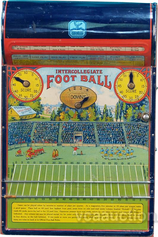 Intercollegiate Football Countertop Metal & Wood Football Game, patented 1923 by Hustler Toy Corporation Sterling, ILL.