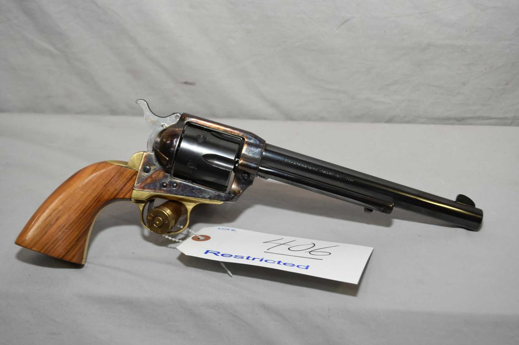 Intercontinental Arms ( Hammerli ) Model Dakota .357 Mag Cal 6 Shot Revolver w/ 191 mm bbl [ appears v - good , blued finish, faint cylinder ring, case colored receiver, brass grip straps and trigger guard, slight marks mostly to hammer ] Ser # 52850 Restricted Handgun Cert # 18493642 FRT # 77751 - 3