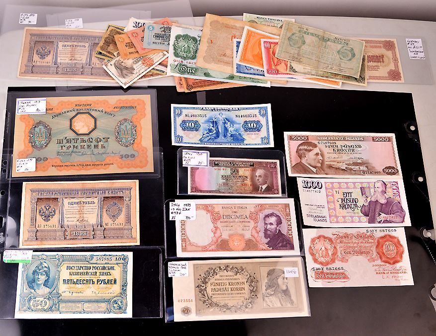 Bohemia & Moravia, 50 Korun, 1944, P.10A, AU; Germany, (6); Great Britain, (2); Greece, 1955, (3); Hungary, 1848, (1); Iceland, (6); Italy, (5); Italian States, (4); Netherlands, (1); Russia, (3); South Russia, (1); Ukraine, 1918, (1); Turkey, 1930, (1); Last three nice; a diverse lot with a few better notes; total 35 pcs.