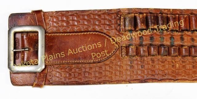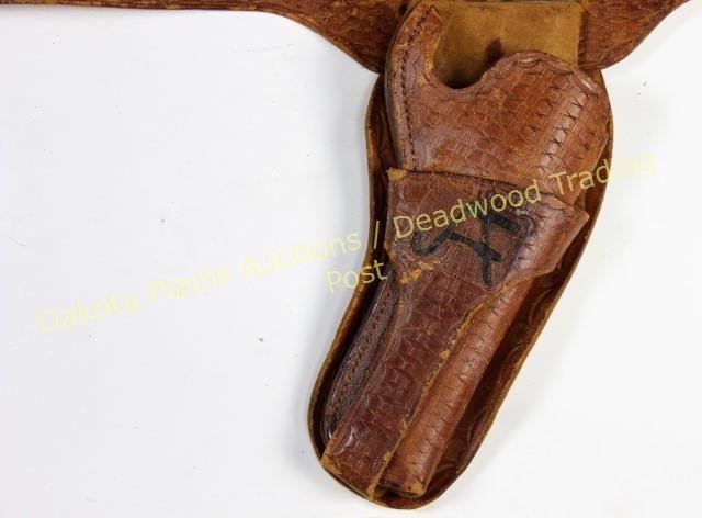 with original double row ammunition belt, buscadero style, stamped near buckle end. Includes antique relic single action brevette. Est. 150-250