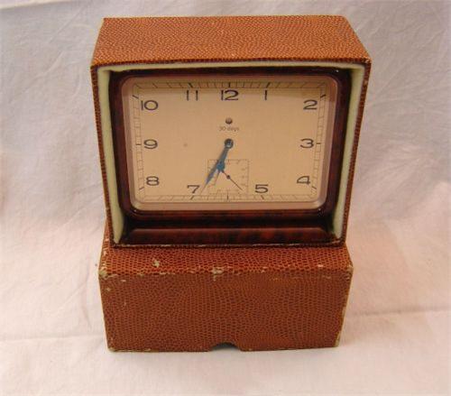 Intéressante horloge de table, boîtier brun, 30 jours de réserve de marche, en bon état, avec box, env. 1960