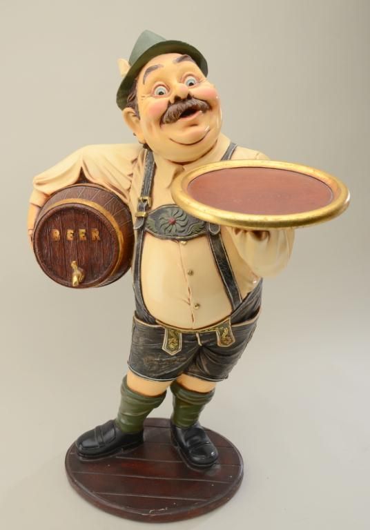 Interesting beer display approx. 36” high showing a German brew master at his trade; in overall good condition; a great decorator for the commercial or home bar. Est.: $75-$150.