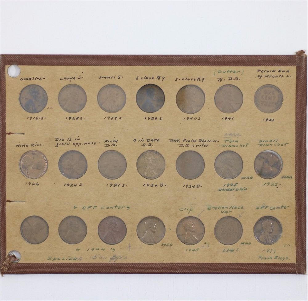 Interesting lot of USA Wheat Cent Varieties in custom holder. Dates range from 1916 to 1944. Varieties are marked above each coin.