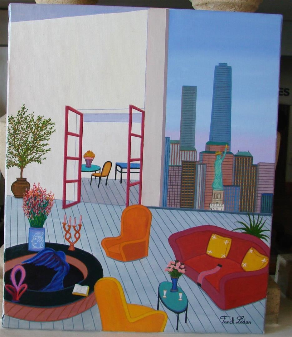 Bright and colorful original 15x21.75" acrylic on canvas, signed by the famed French artist Fanch Ledan. This artwork comes stretched w/COA/