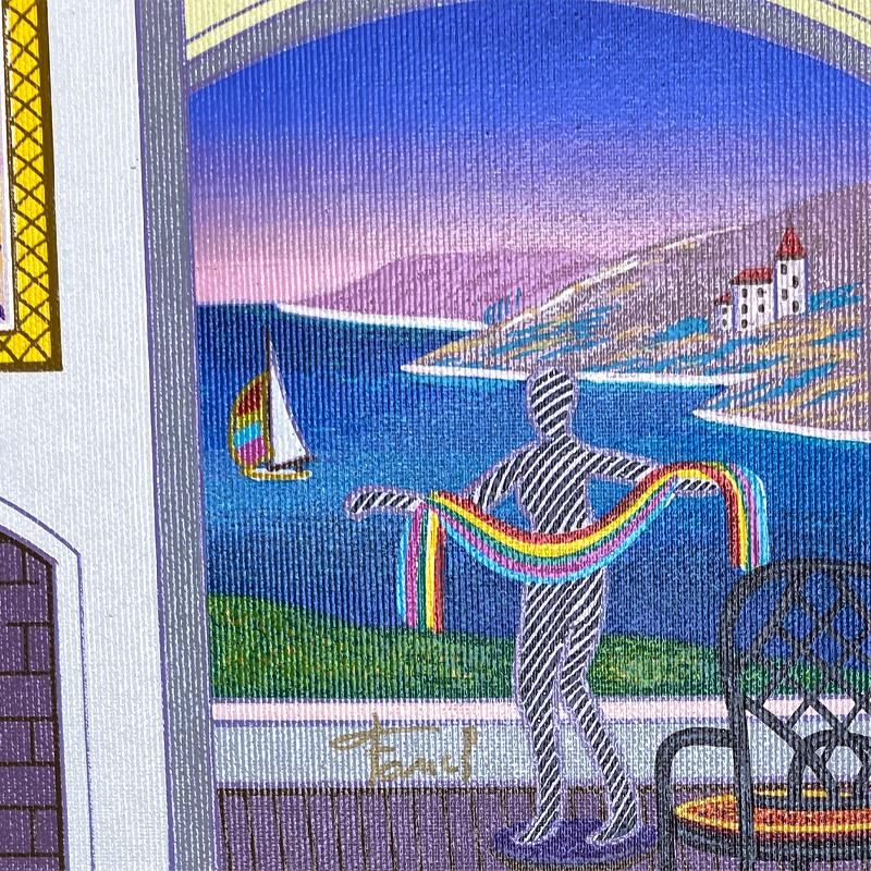 "Interior with Leger" is a limited edition serigraph on canvas by Fanch AP numbered inverso and hand signed by the artist. Includes Letter of Authenticity. Measures approx. 7" x 23" (image). This proof came from Fanch Ledans personal collection. It may have some slight imperfections in the image and border but its overall condition was inspected and approved by him.