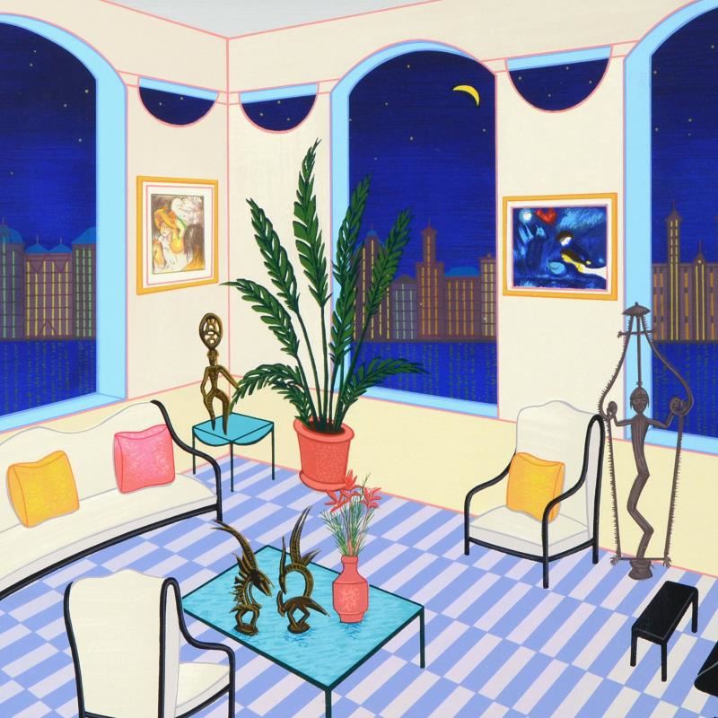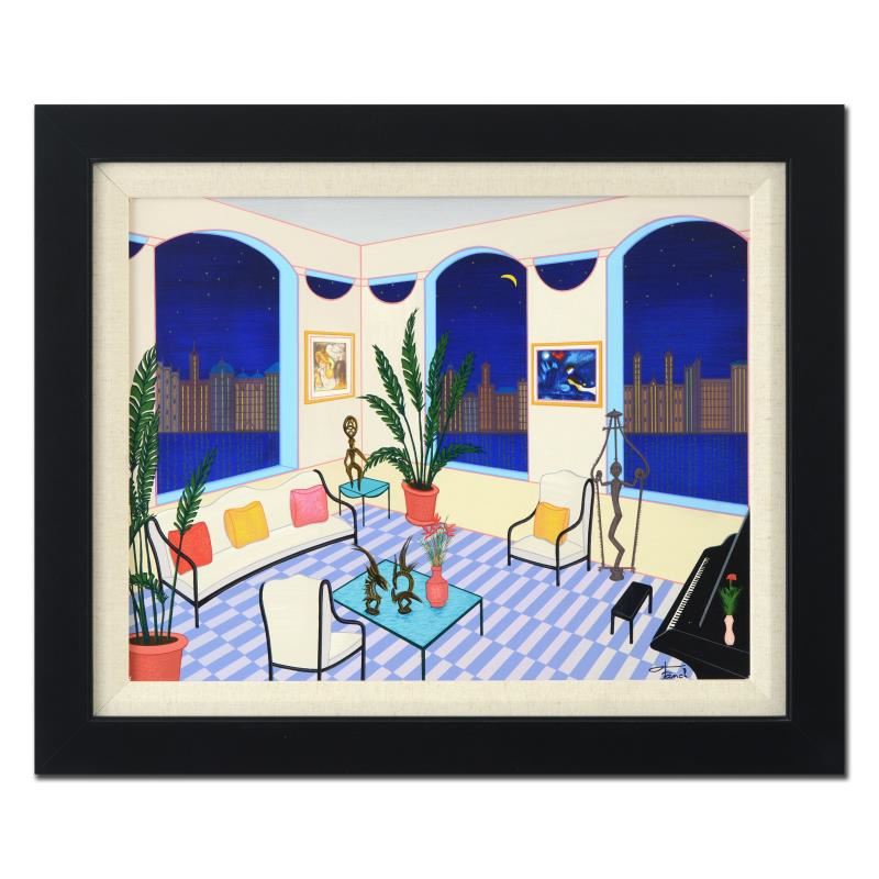 "Interior with Primitive Art" is a limited edition serigraph on canvas, numbered inverso and hand signed by Fanch Ledan. This piece comes custom framed. Includes Certificate of Authenticity. Measures approx. 25.5" x 21" (frame), 19.5" x 15" (image).