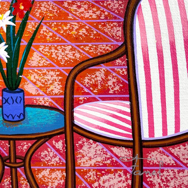 "Interior with Salvador Dali" is a limited edition serigraph on canvas by Fanch, AP numbered inverso and hand signed by the artist. Includes Letter of Authenticity. Measures approx. 23" x 37" (image). This proof came from Fanch Ledan's personal collection. It may have some slight imperfections in the image and border, but it's overall condition was inspected and approved by him.