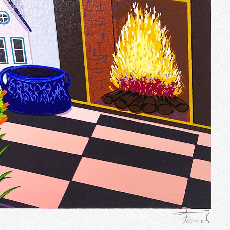 "Interior with Two Chagall" is a limited edition serigraph on paper by Fanch, AP numbered 1/50 and hand signed by the artist. Includes Letter of Authenticity. Measures approx. 16" x 30" (border), 14" x 28" (image). This proof came from Fanch Ledan's personal collection. It may have some slight imperfections in the image and border, but it's overall condition was inspected and approved by him.