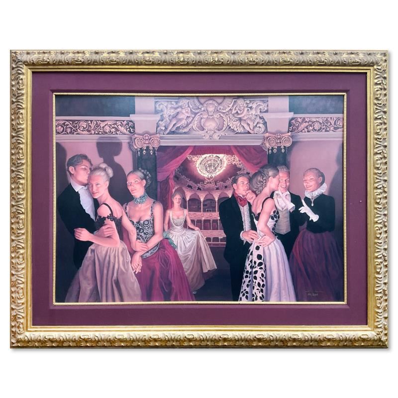 "Intermission" is a limited edition giclee on canvas by Jack Cowan, numbered 50/195 and hand signed by the artist. This piece comes framed. Includes Letter of Authenticity. Measures approx. 42.5" x 54" (frame), 29" x 40.5" (image). There is some wear on the frame.