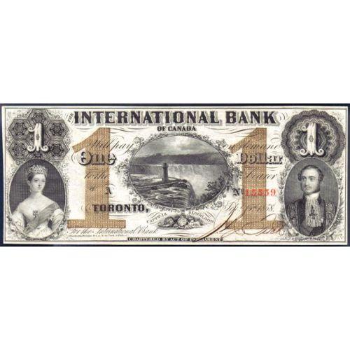 International Bank of Canada One Dollar 1858, Fitch, Red Numbers, CH-380-10-04, Serial Number 15559 A, EF with a pinhole