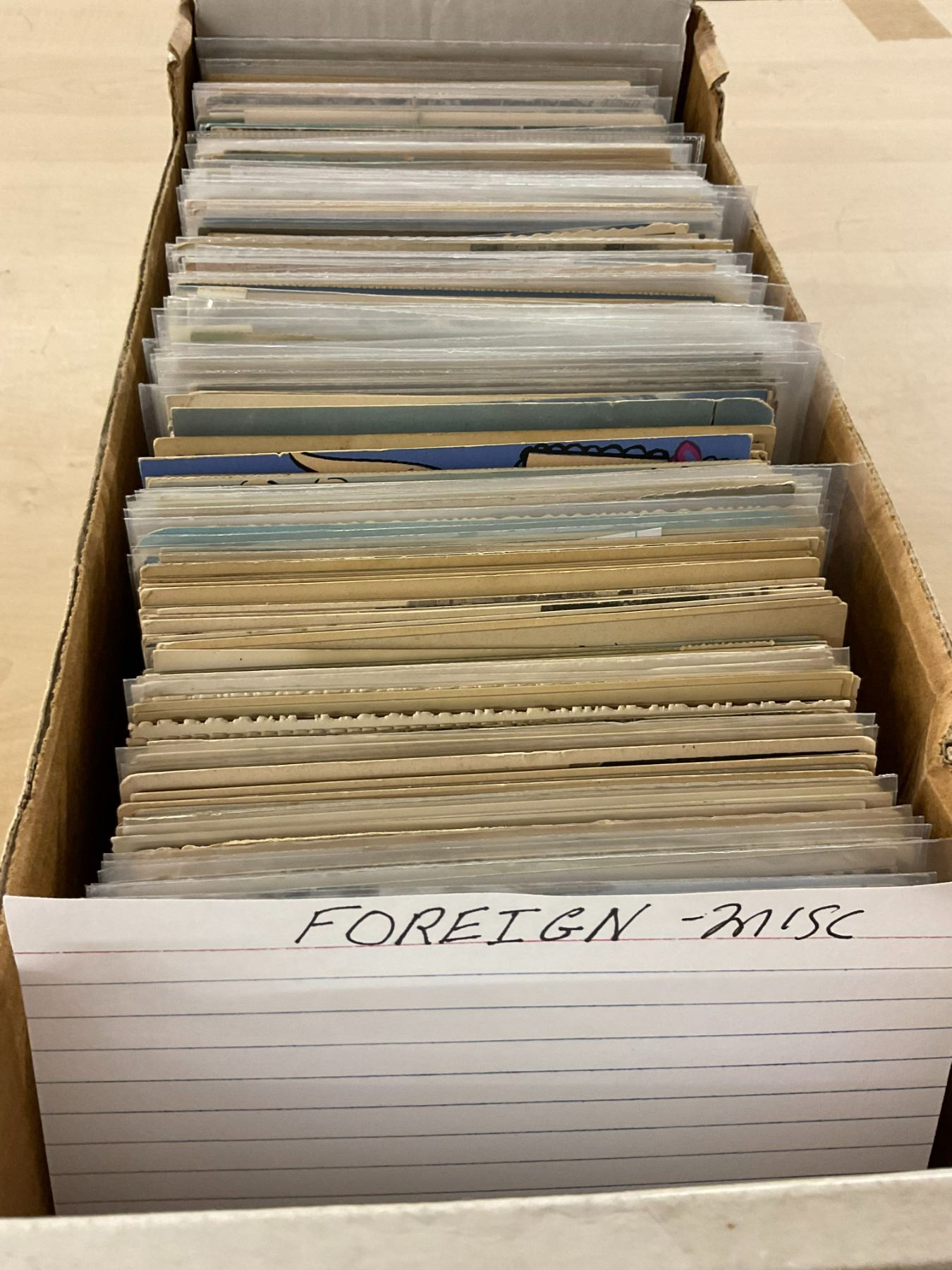 A box of approx. 750 cards from all over. France, Germany, Canada, England, Italy, Japan, and many other countries. Unsorted. Mostly early.