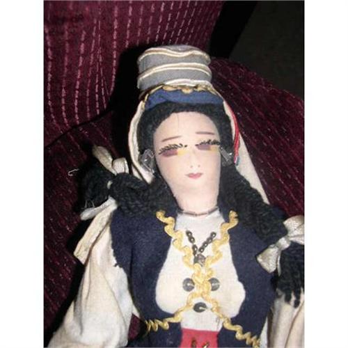 This doll is an international country doll. Unfortunately I don't know what the tag says. It is a printed satin tag that in green letters says..Maxeaoninh Twnia = Oeccaaonikhc. Maybe someone out there will know what country she is from. I have placed her in the European category but am not sure. She has a hat on that has a bill and has a scarf attached to it. She also has shoes but they do not come off. She is 12" tall and has on her original outfit. There is some light fading and some brown age spots on the cream color material.There is yellowing to it. I see one tiny hole in the back on the scarf that comes down from the hat. She has thin black yarn hair. She has mitten type hands with stitching lines for the fingers. Her face has painted features I believe but they could be printed but think they are painted. She has inset eyelashes. She is an unusual foreign doll. She is from a smoke free environment. If you can enjoy her, please bid. Buyer to pay $15 for U.S. shipping, insurance, and handling. Thanks for viewing.