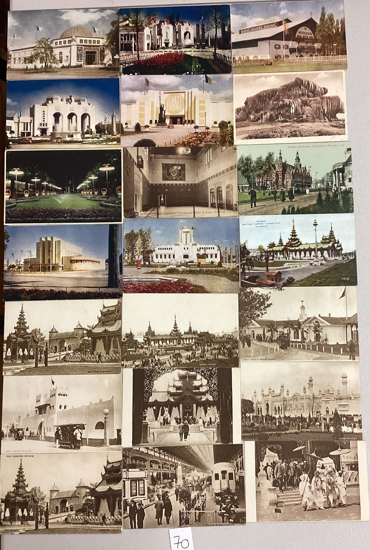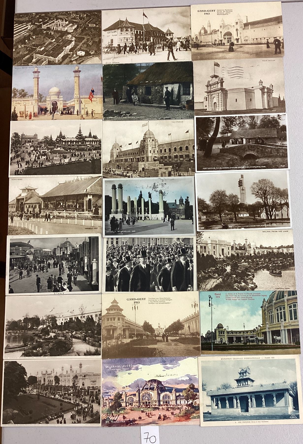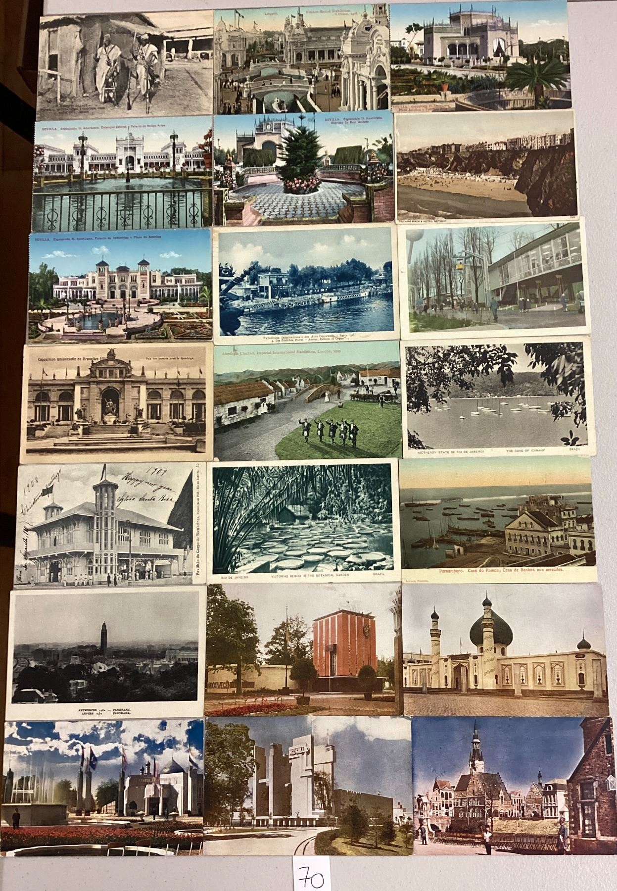 Approx. 80 international exposition postcards. Scotland 1938, British Empire Exhibition 1924, Gand-Gent 1913, Anvers 1930, Izmir International, Franco-British 1908, Sevilla Exhibition, Brussels 1910, 1908 Rio de Janerio, Paris 1931 and more.