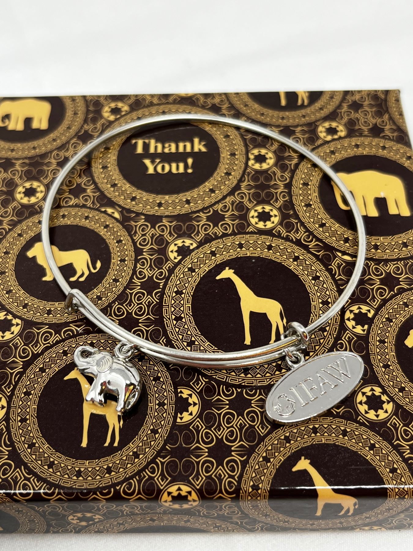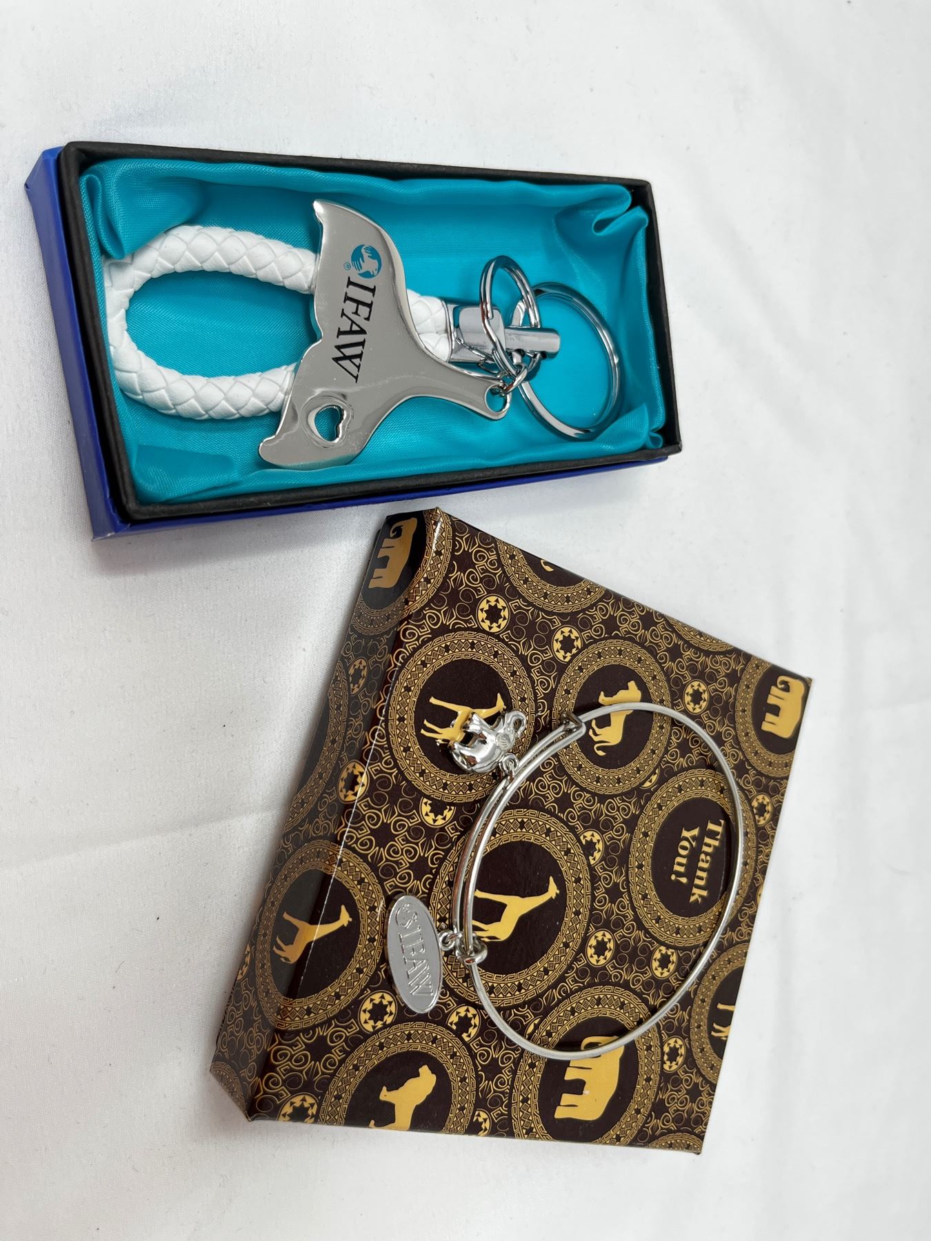 includes IFAW key chain and bracelet with elephant charm.