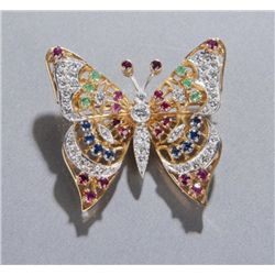 pin A 14KT bee pin with rubies. Set with twenty round, light to medium red rubies, prong and pave-set along "body" of insect, .02 CT eac...