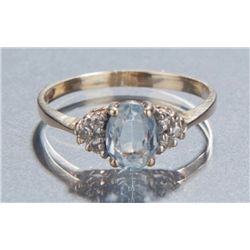 An aquamarine & diamonds gold ring. 10KT gold. Aquamarine is approx. 0.68CT. Diamonds are approx. 0.025CT each. Size 6 1/2. Tw 0.05 t oz.