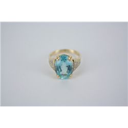 130 - Aquamarine & diamonds gold ring.Quinn's Auction Galleries