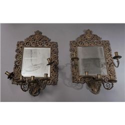 A pair of mirrored tin wall sconces. 19th century. 9"l x 8"diam.