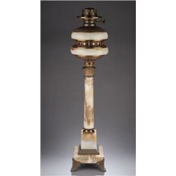 Brazilian onyx or agate oil lamp w/ Baccarat shade207 - Brazilian onyx or agate oil lamp w/ Baccarat shade