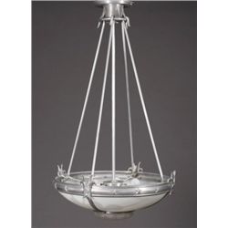 A metal and glass chandelier originally used in Union Station, Washington, DC. 2nd half 20th century. With stars and fleur de lis around rim. Requi
