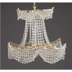 A crystal and brass hand made Czech chandelier with two rows of crystal swags. 20th century. From ceiling: 32 1/4"l.