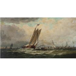 Brisco, Franklin Dullin (Penn., 1844-1903). Marine scene with sailboats. Oil on canvas. Signed l.l. "F.D. Briscoe". Simple gilt wood fra...