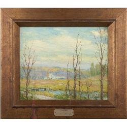 Marshall, Clark (Maryland/Del., 1860-1944). "April Day". Oil on board. Signed at l.r, "Clark Marshall". Gilt wood frame. 10&qu...