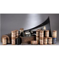 An Edison standard phonograph in original case with horn and 23 cylinders. 1st quarter 20th century. With plaque labeling patent dates. Serial no.