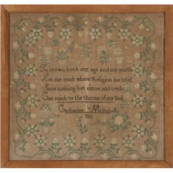 An American sampler with poem and floral motif. Signed and dated Catharine Mitchell 1829.