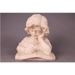 Italian marble bust of girl writing, E. Battiglia.238 - Italian marble bust of girl writing, E. Battiglia.
