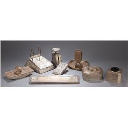 Set consisting of Group of 5 Limoges oyster plates including a 9" Haviland and Company plate with six oyster wells and enameled with aquatic ...
