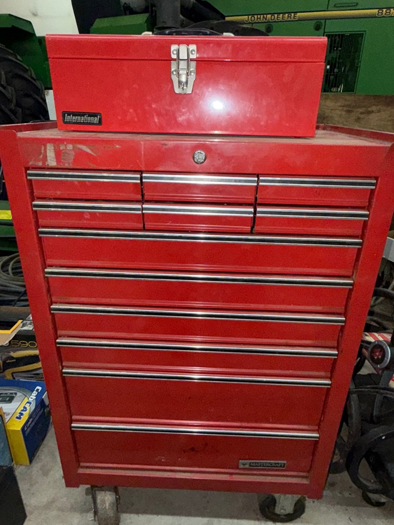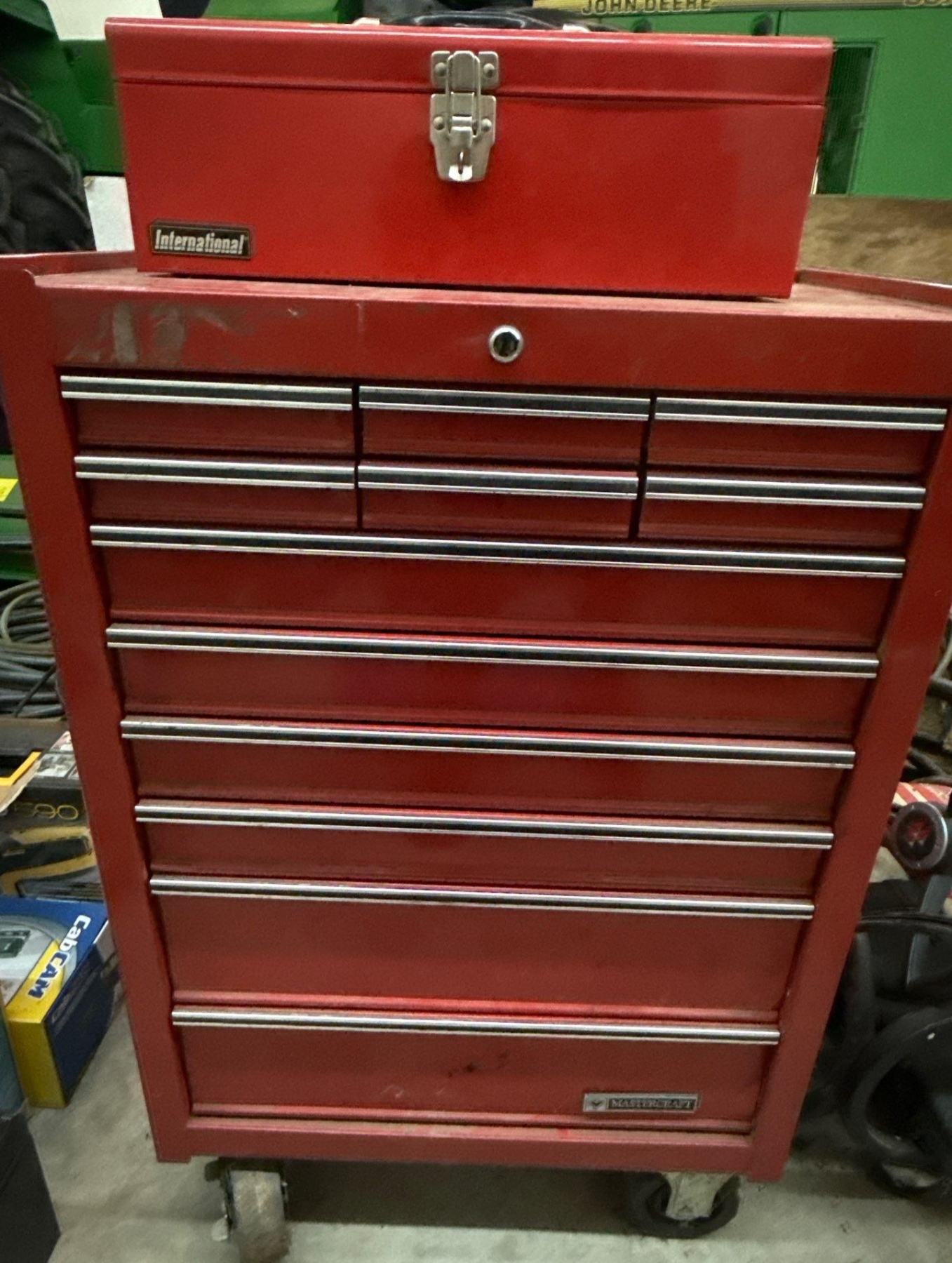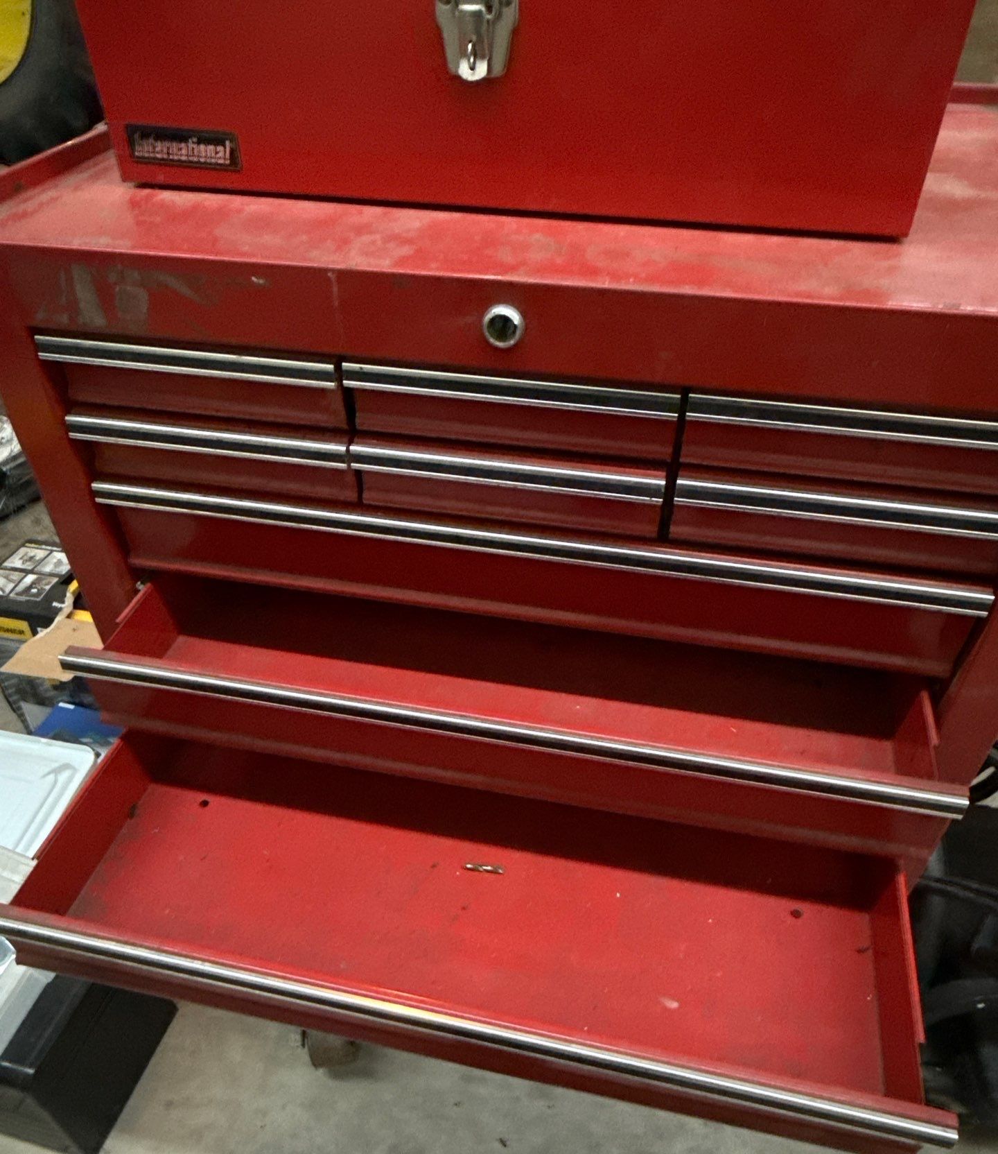 International Mechanics Multi-Drawered Rolling Tool Chest w/Top Box Basic Tools in Small Box