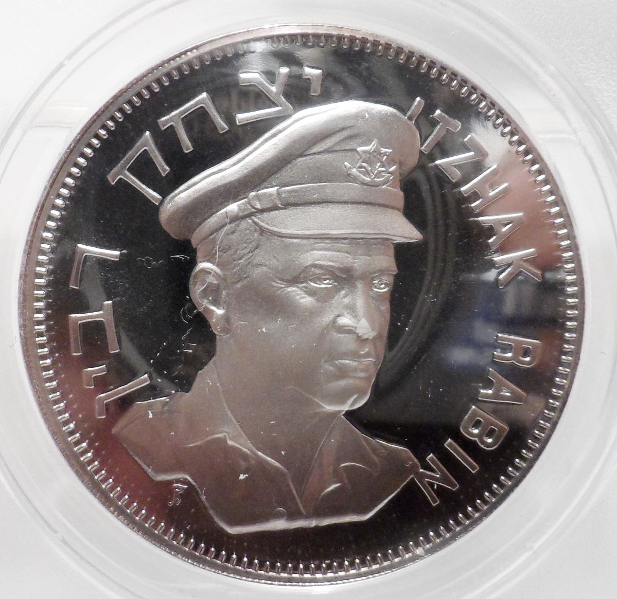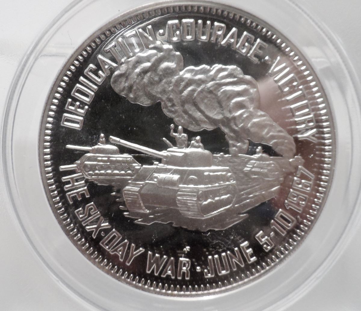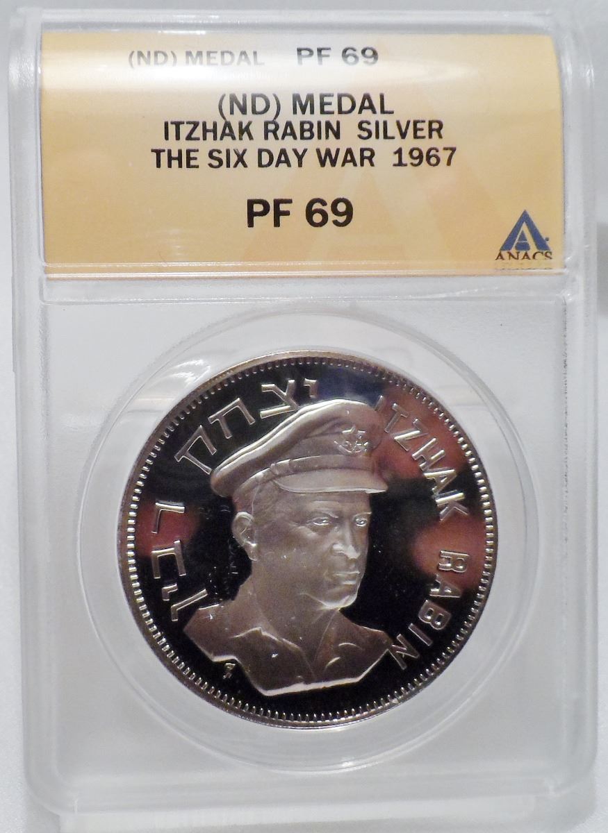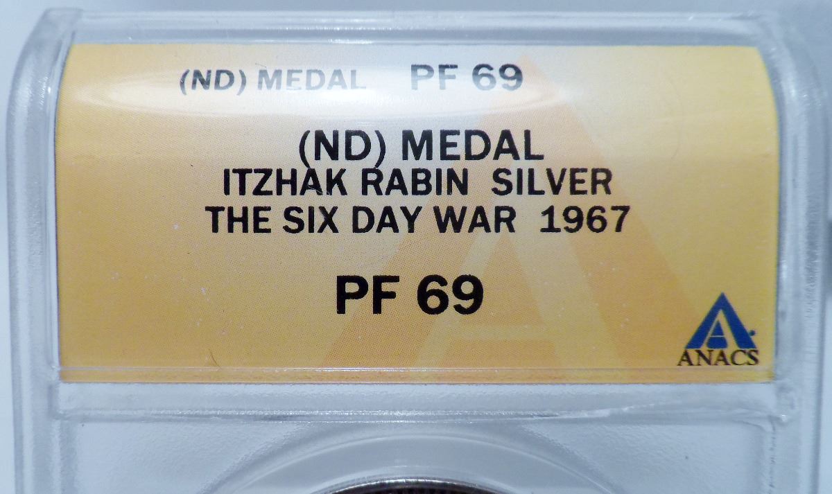 ANACS Slabbed PROOF 69 DCAM 1967 Rare Sterling Silver Itzhak Rabin ''The Sixth Day OF War'' 39mm 290 reeds RARE The Franklin Mint, Only 600 Made