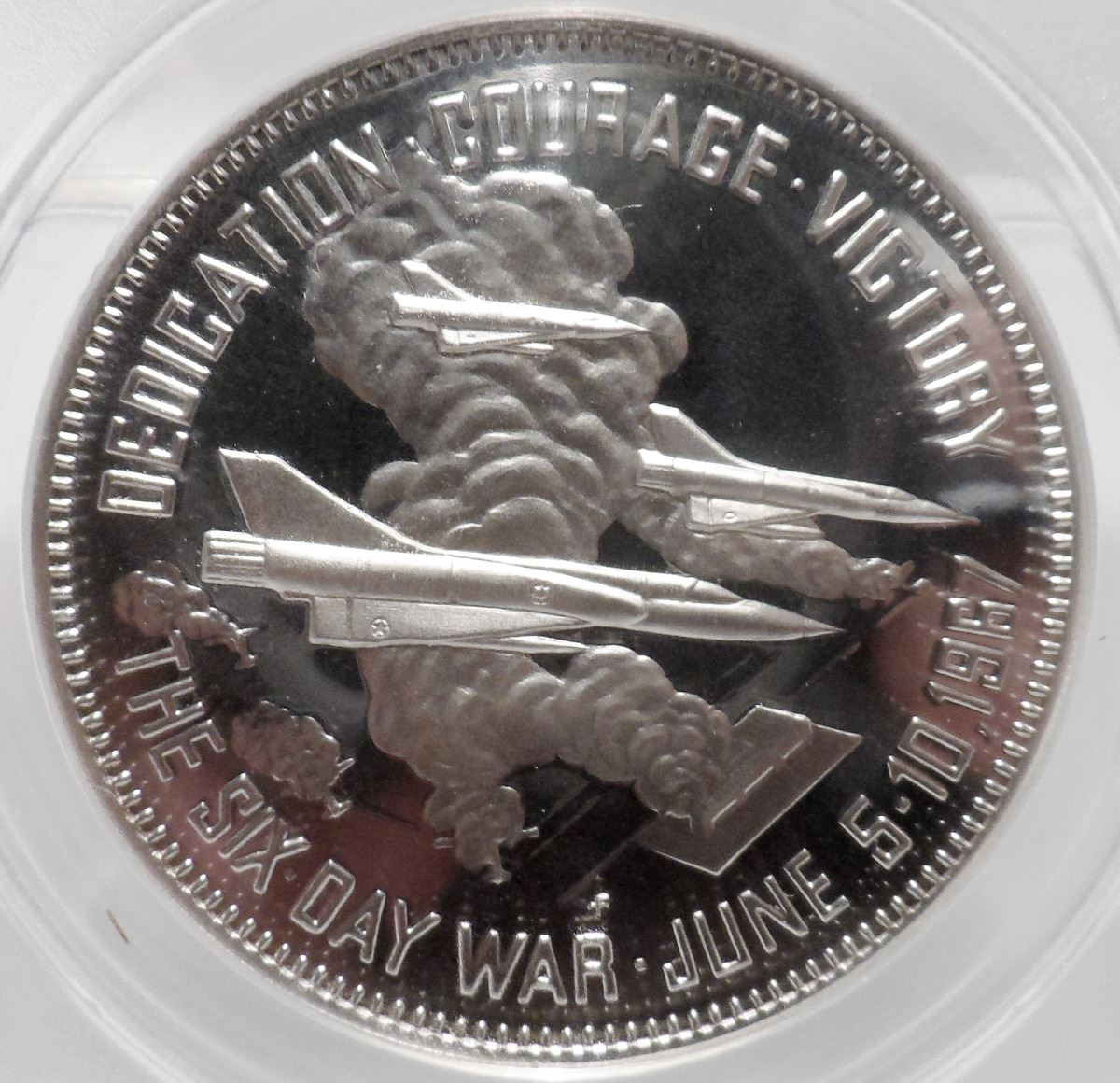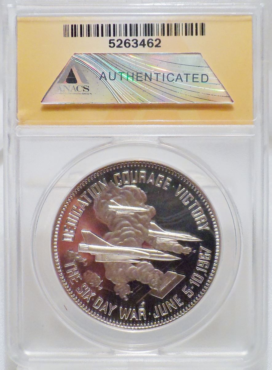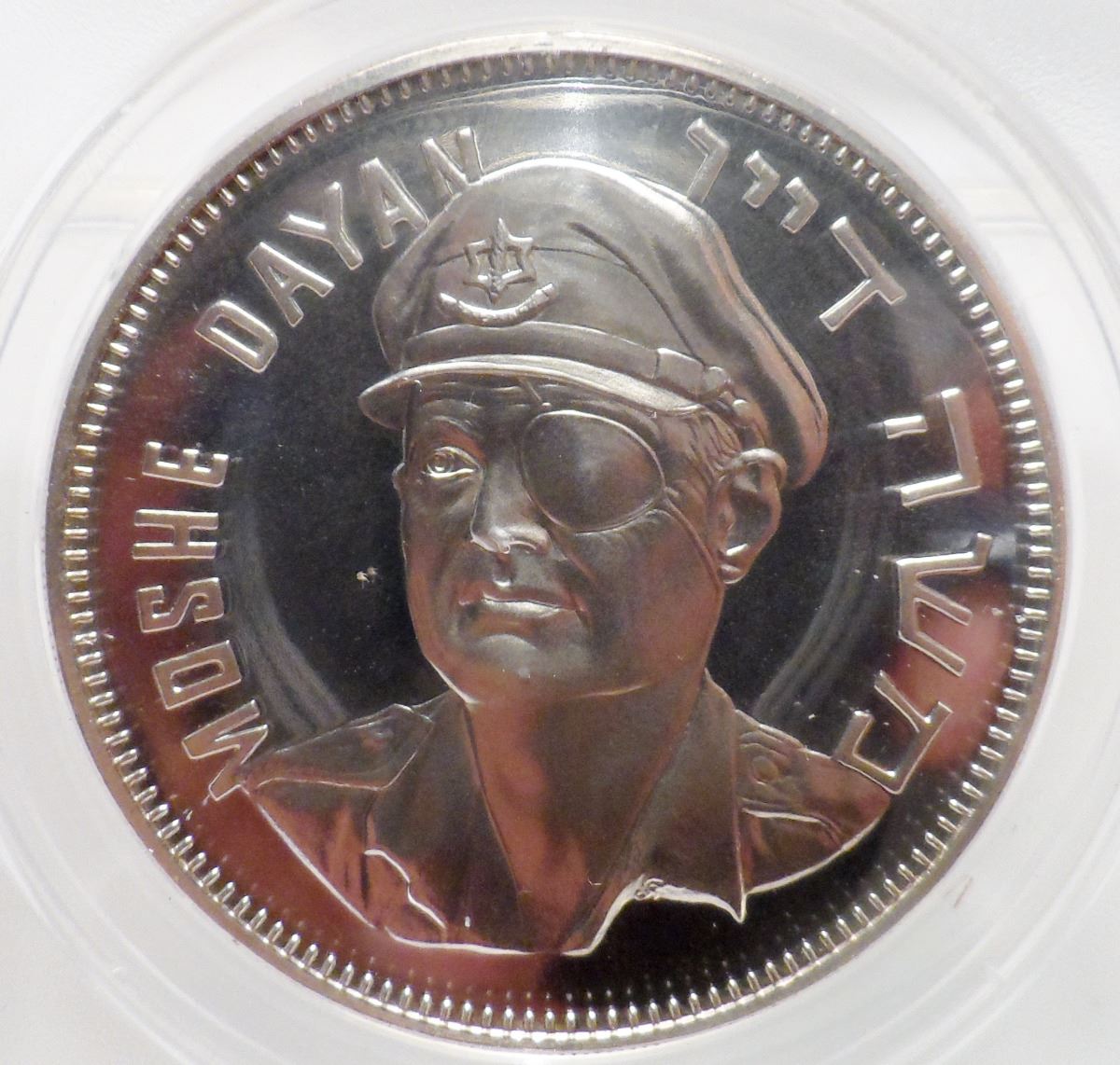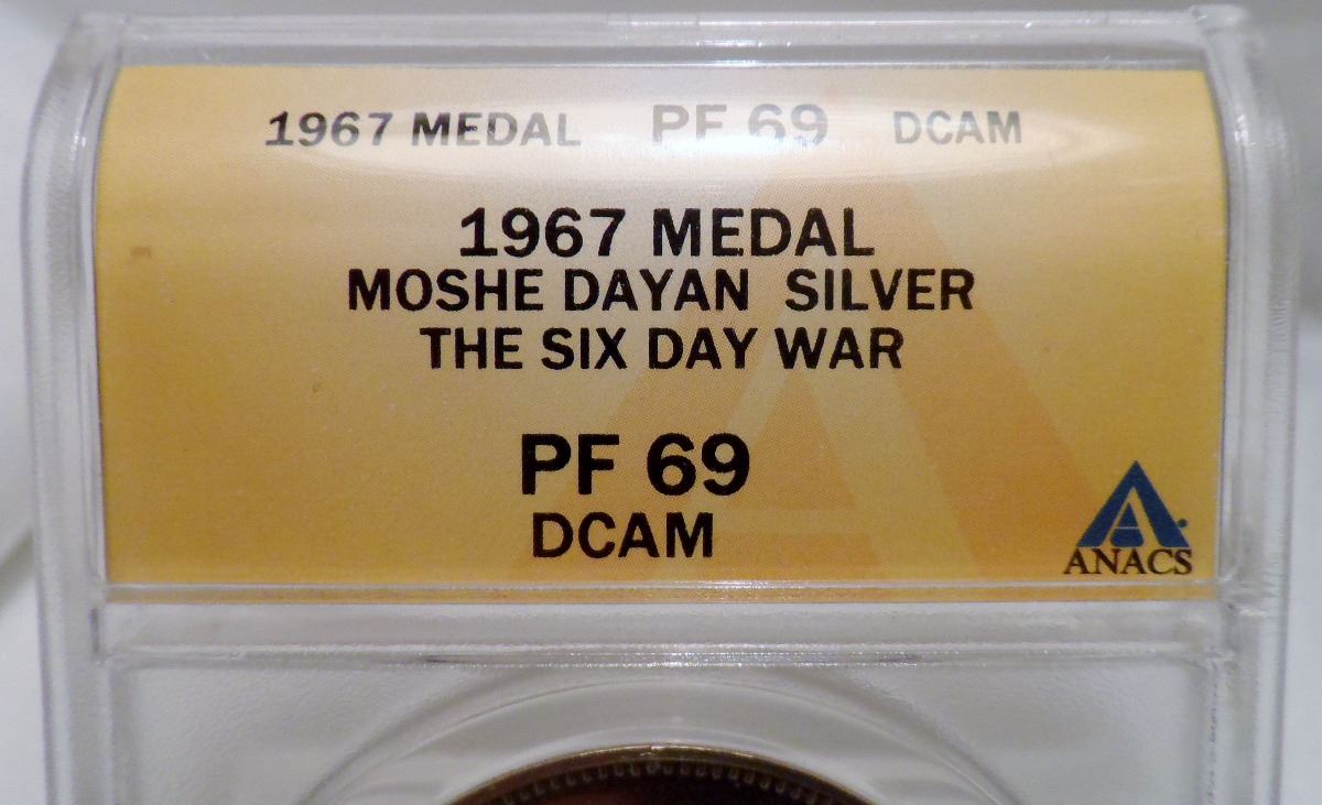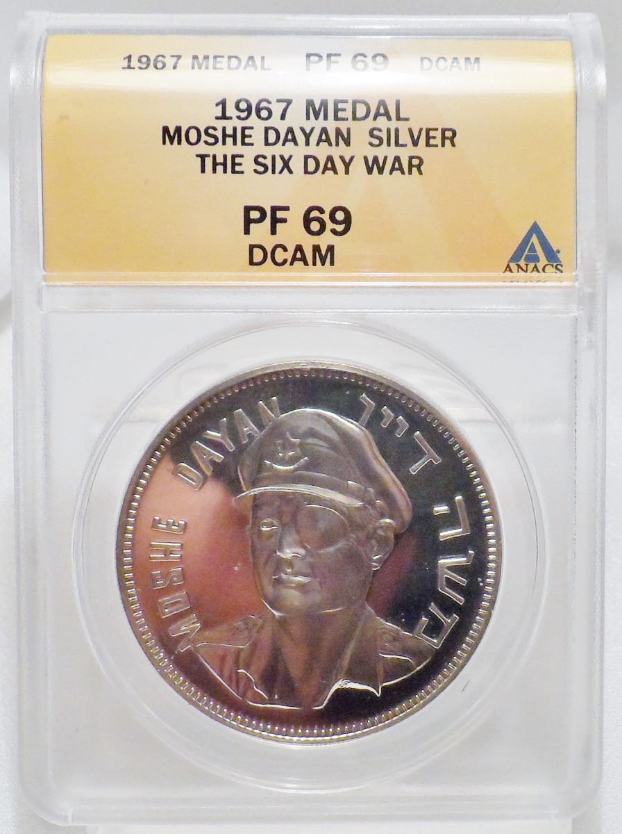 ANACS Slabbed PROOF 69 DCAM 1967 Rare Sterling Silver Medal Moshe Dayan 39mm 290 reeds RARE The Franklin Mint, Only 600 Made