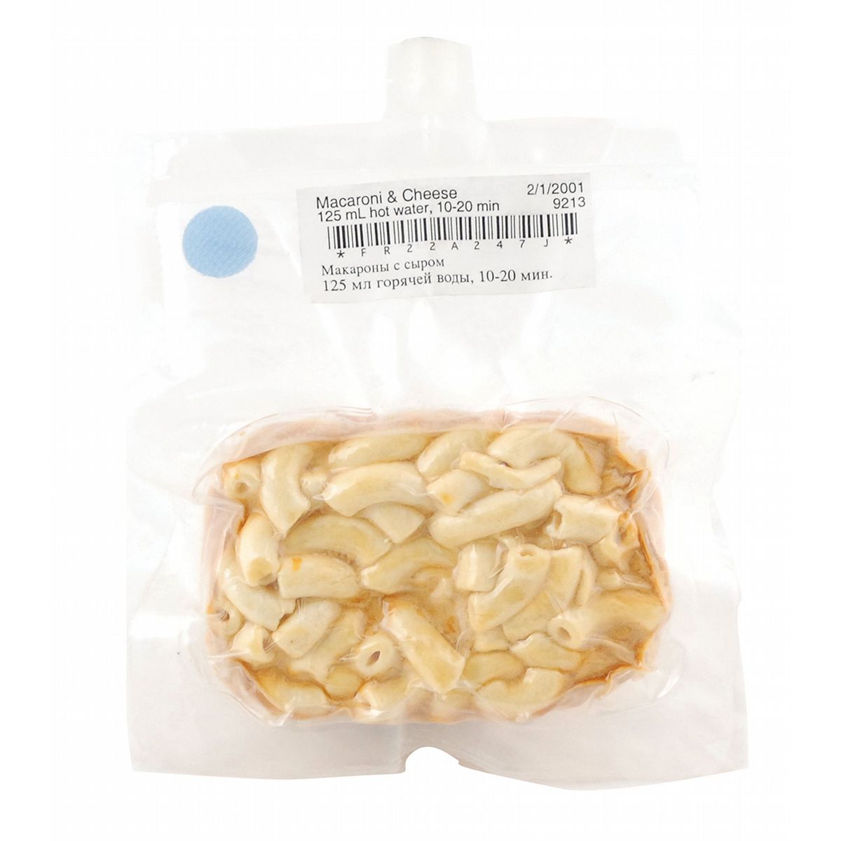 A vacuum-packed packet of macaroni and cheese made for use on the International Space Station. Packet measures 5.25 x 6.25 with a small nozzle at the top for the addition of water. Label affixed to one side reads, “Macaroni & Cheese 2/1/2001,” with heating instructions in English and Cyrillic. A small circular swatch of Velcro is affixed to the other side of the packet. In fine condition.