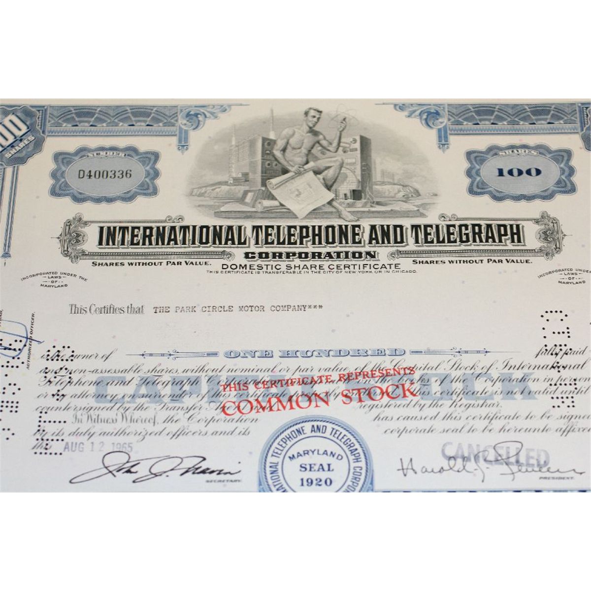 International Telephone & Telegraph Corp. Stock Certificate dated 1965