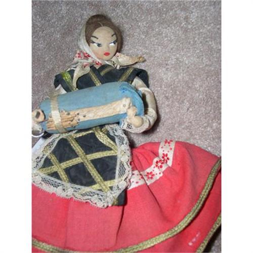 Here is a Layna doll wich was made in Spain. She has painted features and is dressed in regional attire. She has a wire coming out of her right hand. She does have some fade and there are some holes in her scarf and blouse. She's a little dusy. The red and blue thread that is used to make her stockings is adorable. If it's something you like, please bid. She is from a smoke free environment. Buyer to pay $10 for U.S. shipping, insurance, and handling. Thanks for viewing.