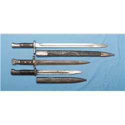 1) British proofed 1907 bayonet with a 17 inch blade and leather scabbard. 2) Italian bayonet with an 11 1/2 inch bl