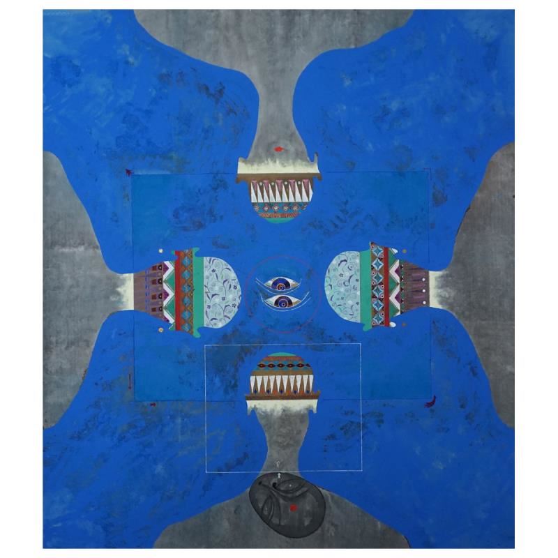 "Interstitial Intertexture (1992)" is an original mixed media painting on paper by Lu Hong. Hand signed by the artist, the piece comes with a letter of authenticity. Measures approximately 35" x 34.5".