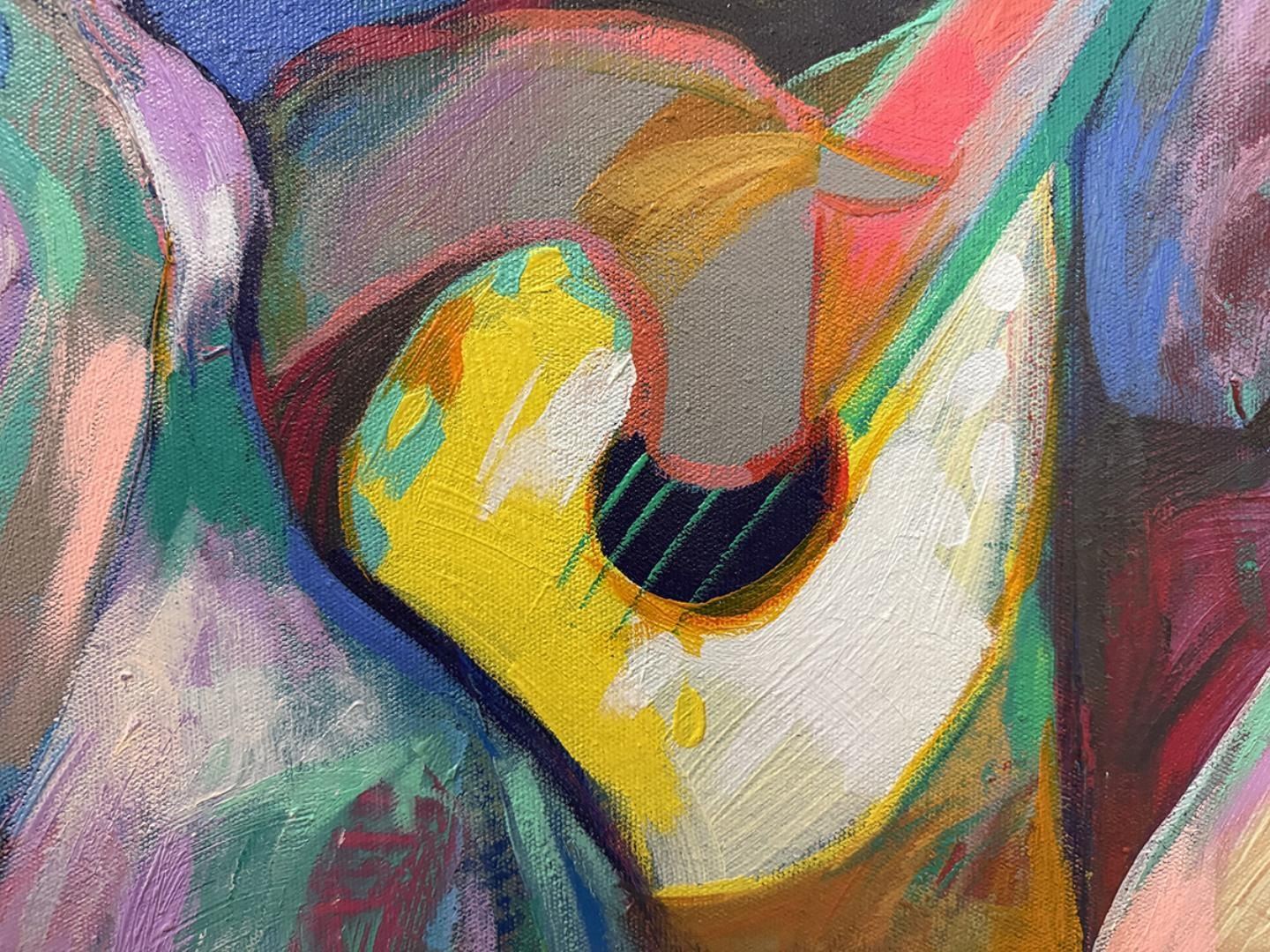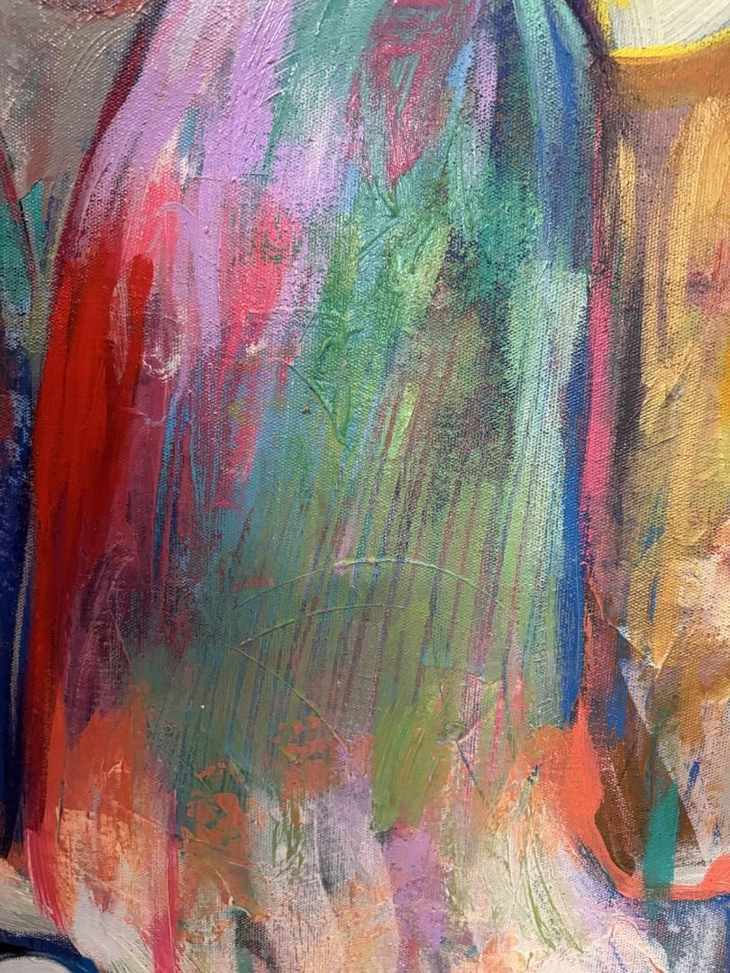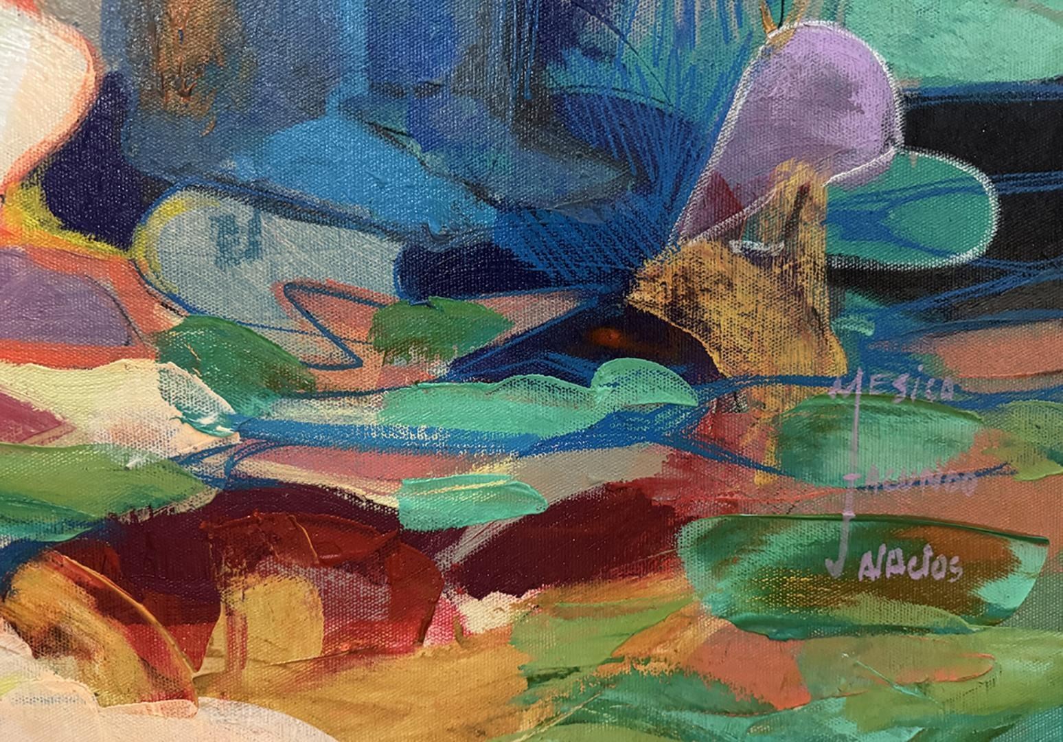 Fantastic original acrylic on canvas. Hand signed 28x60" by artist. This artwork comes framed and ready to hang.
