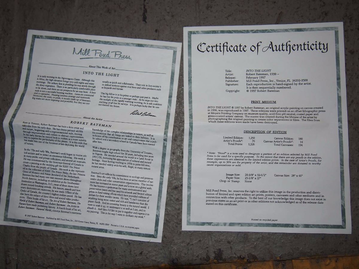 Into The Light By Robert Bateman, Lithograph Print, 28”x46” W/ Frame