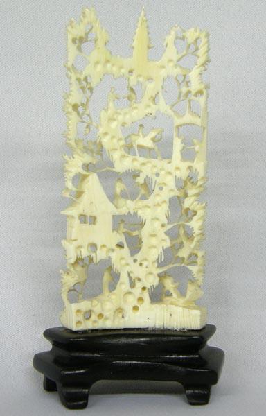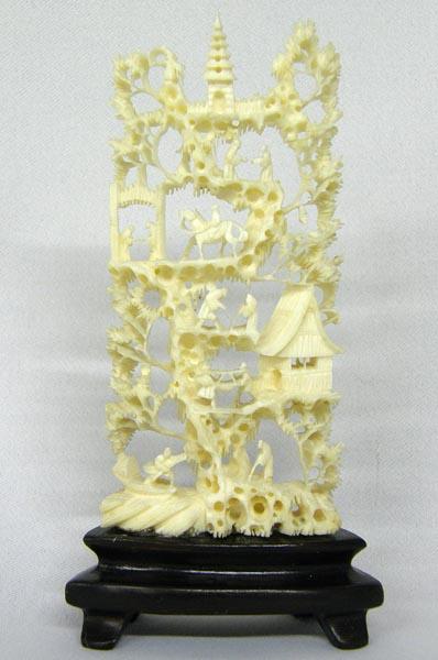 Intricate Oriental Ivory Carving on Stand. Measures approx. 2.5''Wx5''H. Buyers Pay Actual Shipping and Handling Charges(see terms and conditions for more information).