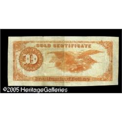 <B>Intriguing $500 1882 Partial Printing.</B></I> Acquired by the Taylor Family as an error note which was missing two of the three face printings. The front of the note has only the large "GOLD" at the top center and the two devices of the same color intended to be an underprint for the serial numbers. The back of the note is the normal reverse printing in its proper orange color. Although the possibility that this is an error is always there, we are not at all convinced. The margins are overly large for the issue, particularly at the top and bottom, and the note appears to be scissor cut all the way around. Our strong surmise is that this is a Proof, Progress Proof, test printing, or specimen of some type. The best argument in favor of this being an actual error is the fact that it is printed on paper which contains the red and blue security fibers, a paper which we have never seen used for anything other than regular issue notes. We can make no determination here as to the true status of this mysterious item, other than to say that it is definitely a Bureau produced piece, and suggest that bidders carefully inspect the item and come to their own conclusion. Due to the uncertain status of this note, it is being offered here without estimate and without a return privilege, and its sale will be considered final. Lot:15014