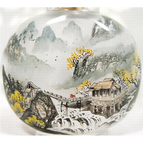 Please note I only ship to Canada and USA and if paypals is used the address MUST BE CONFIRMED.<p>Intriguing Waterfall Landscape Snuff Bottle of MAGNIFICENT Quality.. Inside painting at it's finest! One can simply see every feature completed in phenonemal detail. Simply an awesome creation worthy of the most seasoned collector's attention.