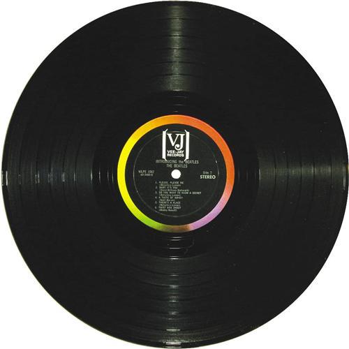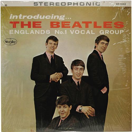 <B>"Introducing...The Beatles" Stereo LP (Vee-Jay 1062, 1964).</B></I> Black label with silver letters, with "VJ" in brackets, including "Please Please Me" and "Ask Me Why", <I>and with blank back cover.</B></I> Only the third instance we've seen with these songs and the blank back cover! The original shrinkwrap is intact, except at the record opening. The cover has a small hole at the top left corner. Condition: EX 7/ MT 9.<BR><BR><b>Shipping:</b> Recordings (<a target="_blank" href="http://www.heritageauctions.com/common/shipping.php">view shipping information</a>)