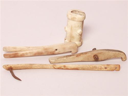 Four Ancient Utility Items Incl Toggle Pulleys Etc.<BR>2.75 Long<BR>GC