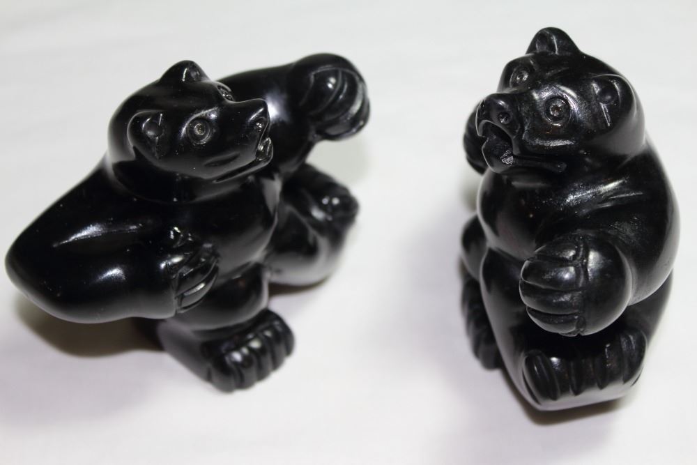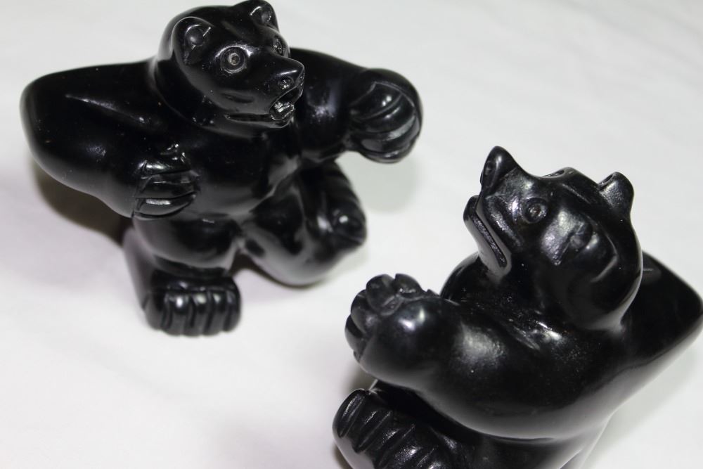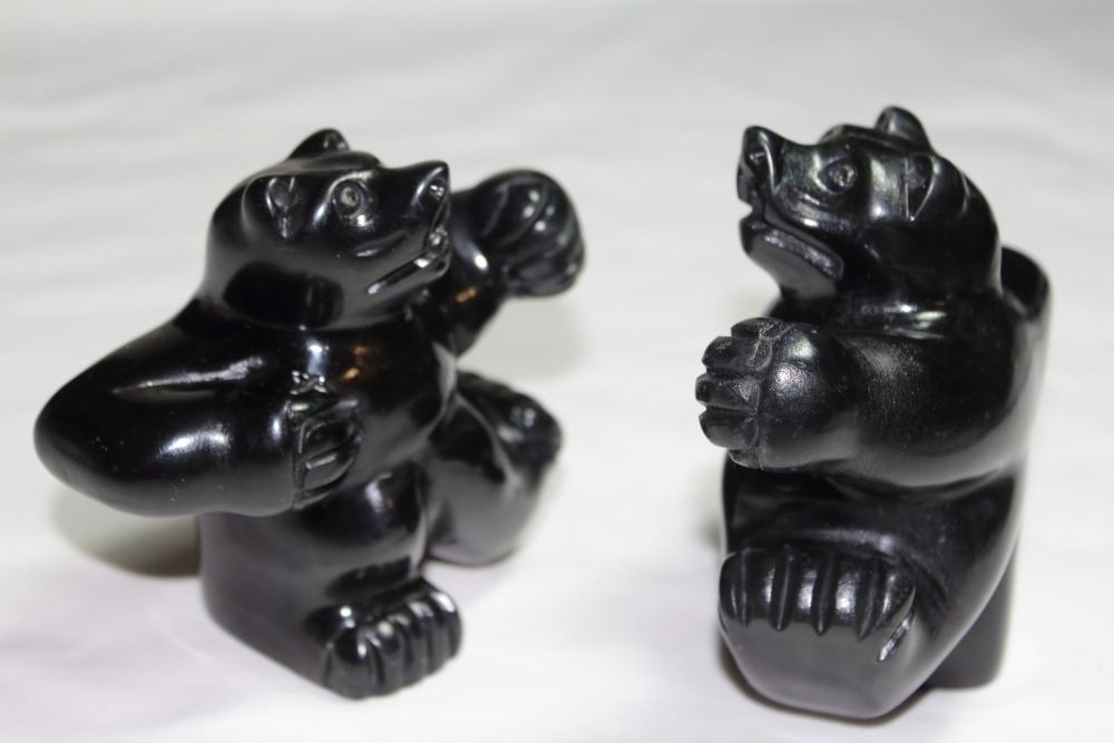 Inuit Bear Cubs Dancing Pair .....black soapstone.....heavy bears...Height 11 cm each.