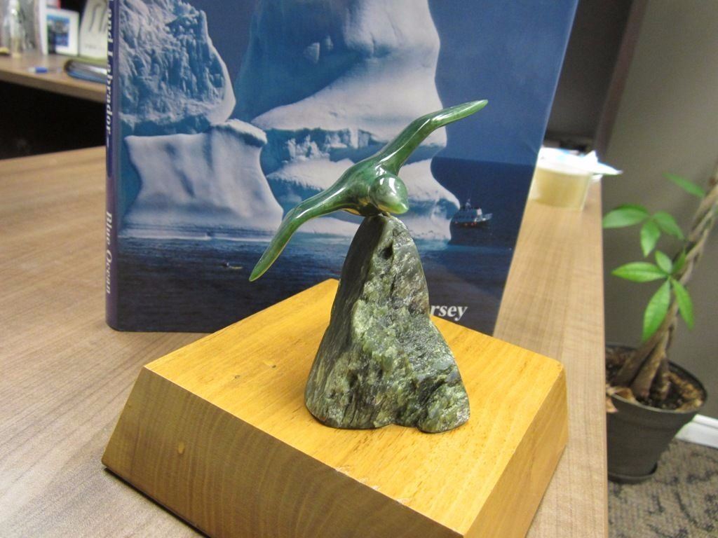 Inuit Carved Green Soapstone Sea bird......Green Soapstone gives the look of Green jade. Old Carving around 1980s....Perfect condition.
