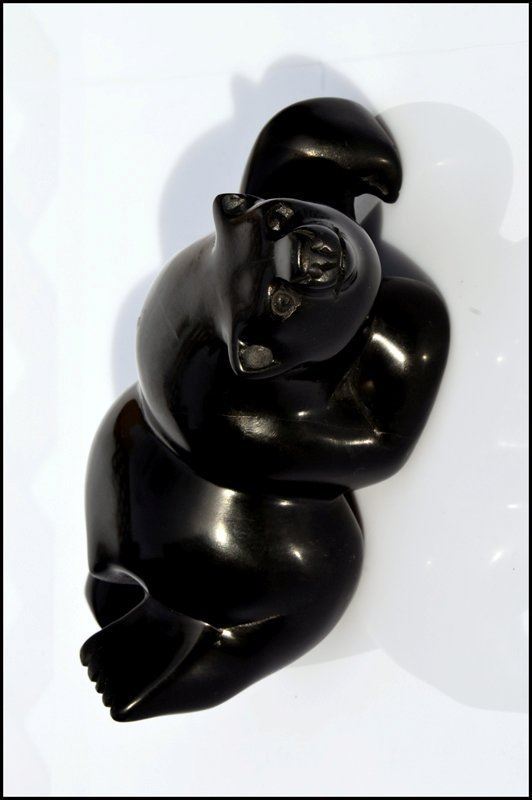 Inuit dancing bear....black soap stone.7" height...great art piece by world class master carver.... Shytu
