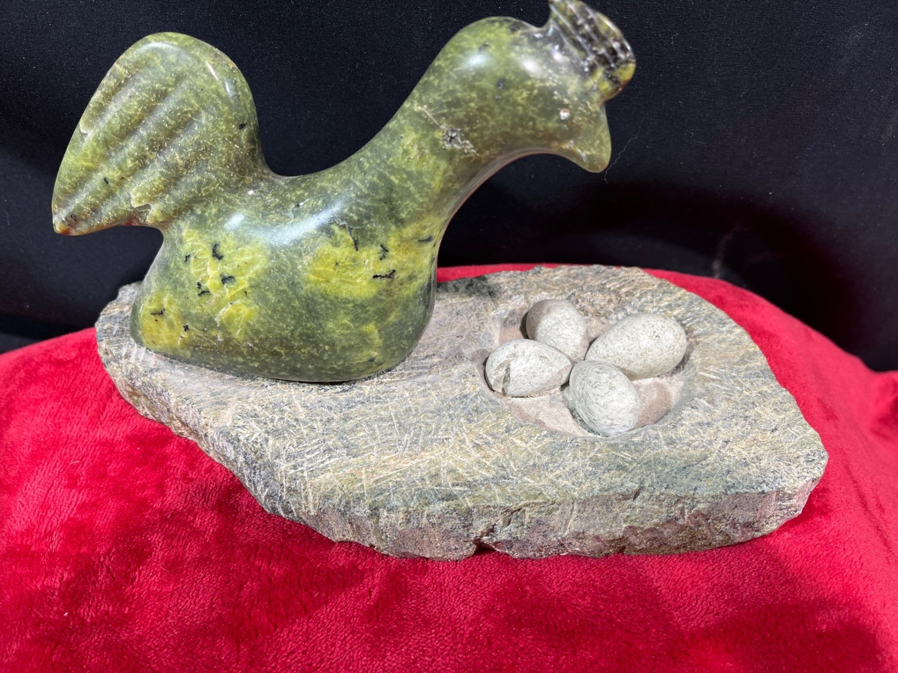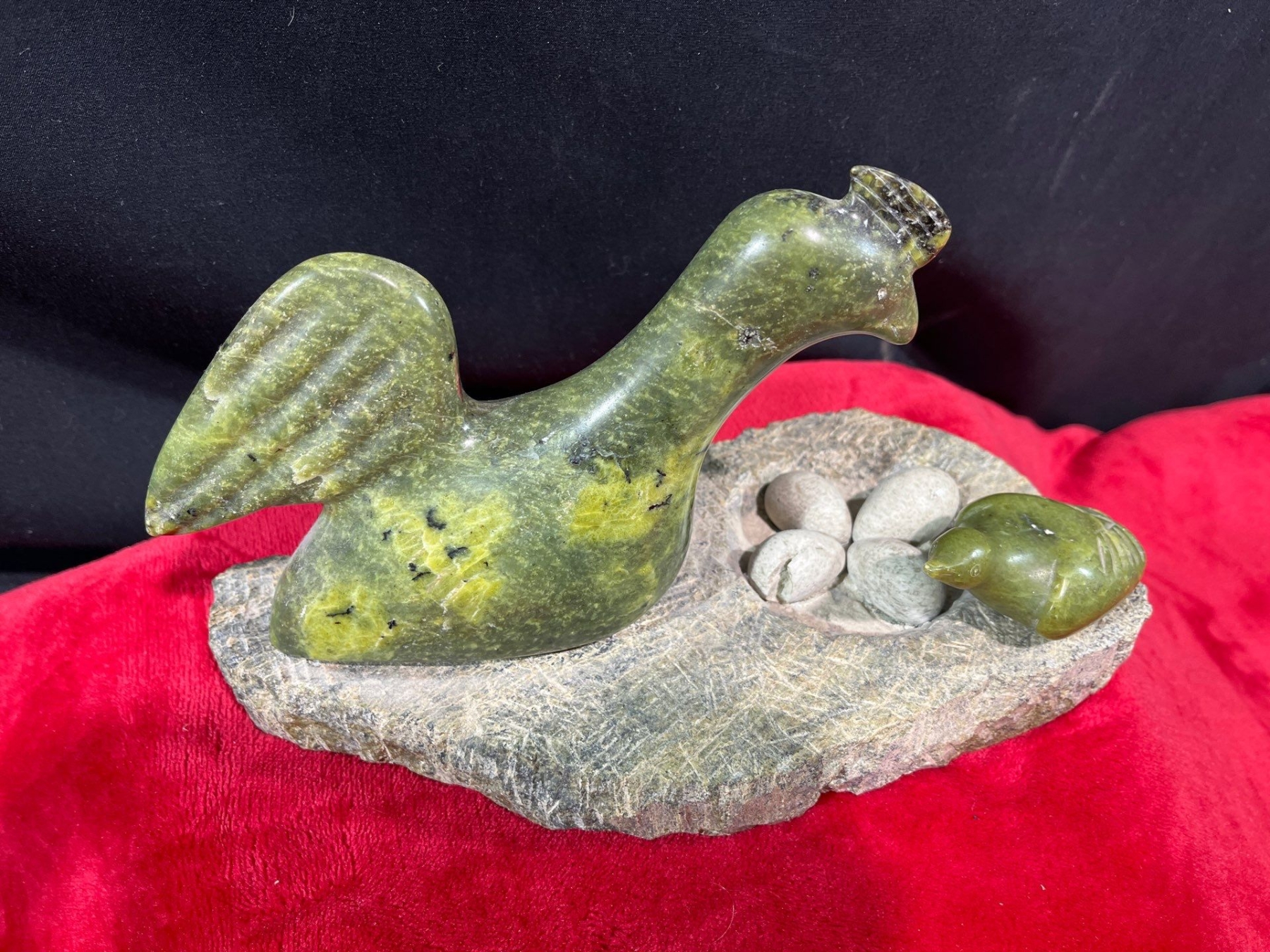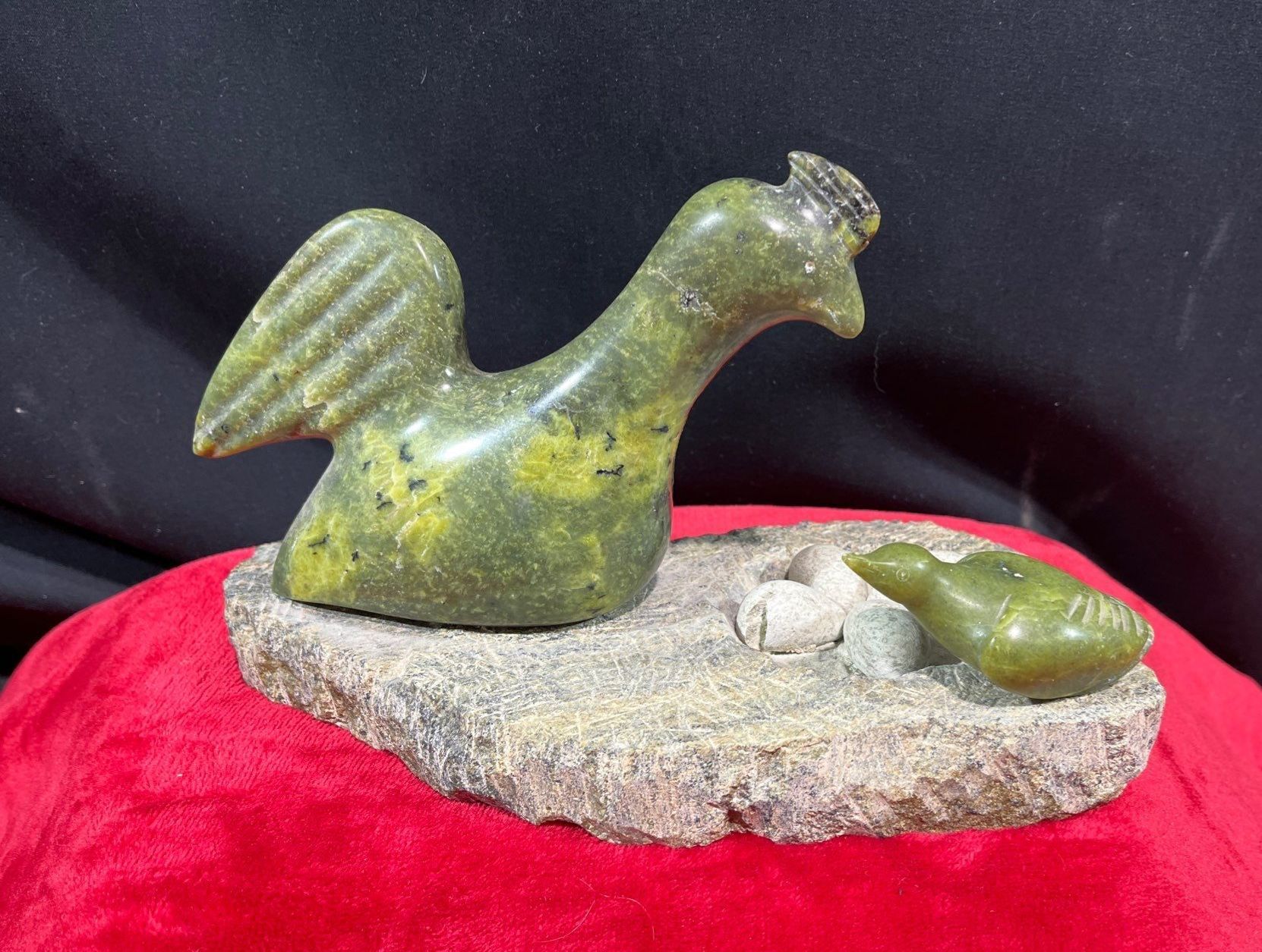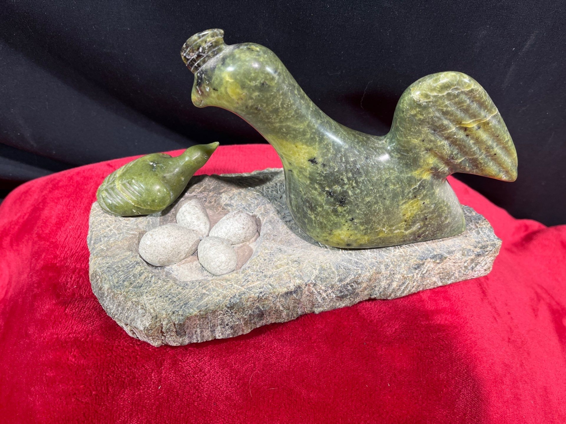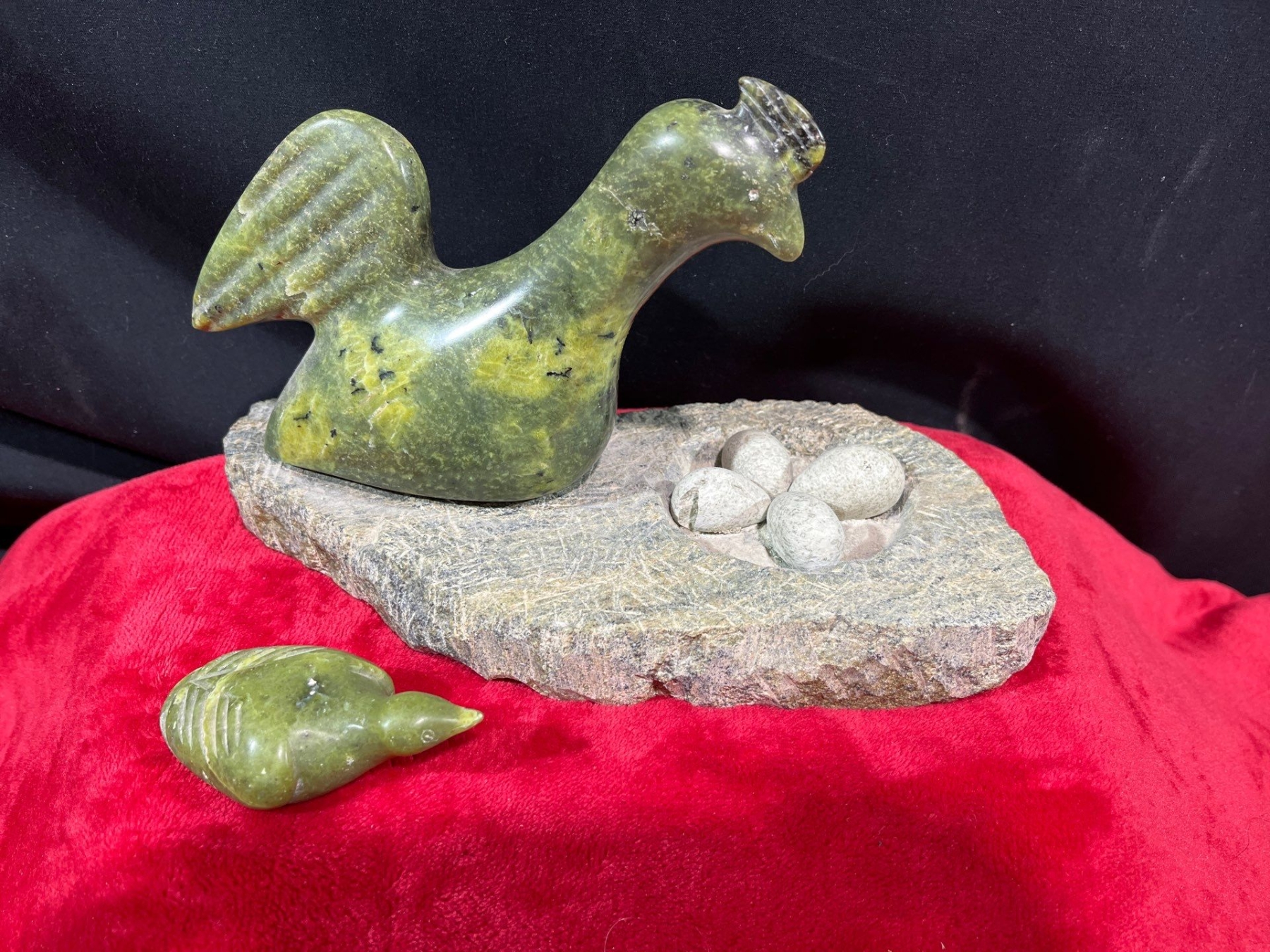 Inuit Northern Bird, Chick, and Nest Soapstone Carvings 11Wx6H